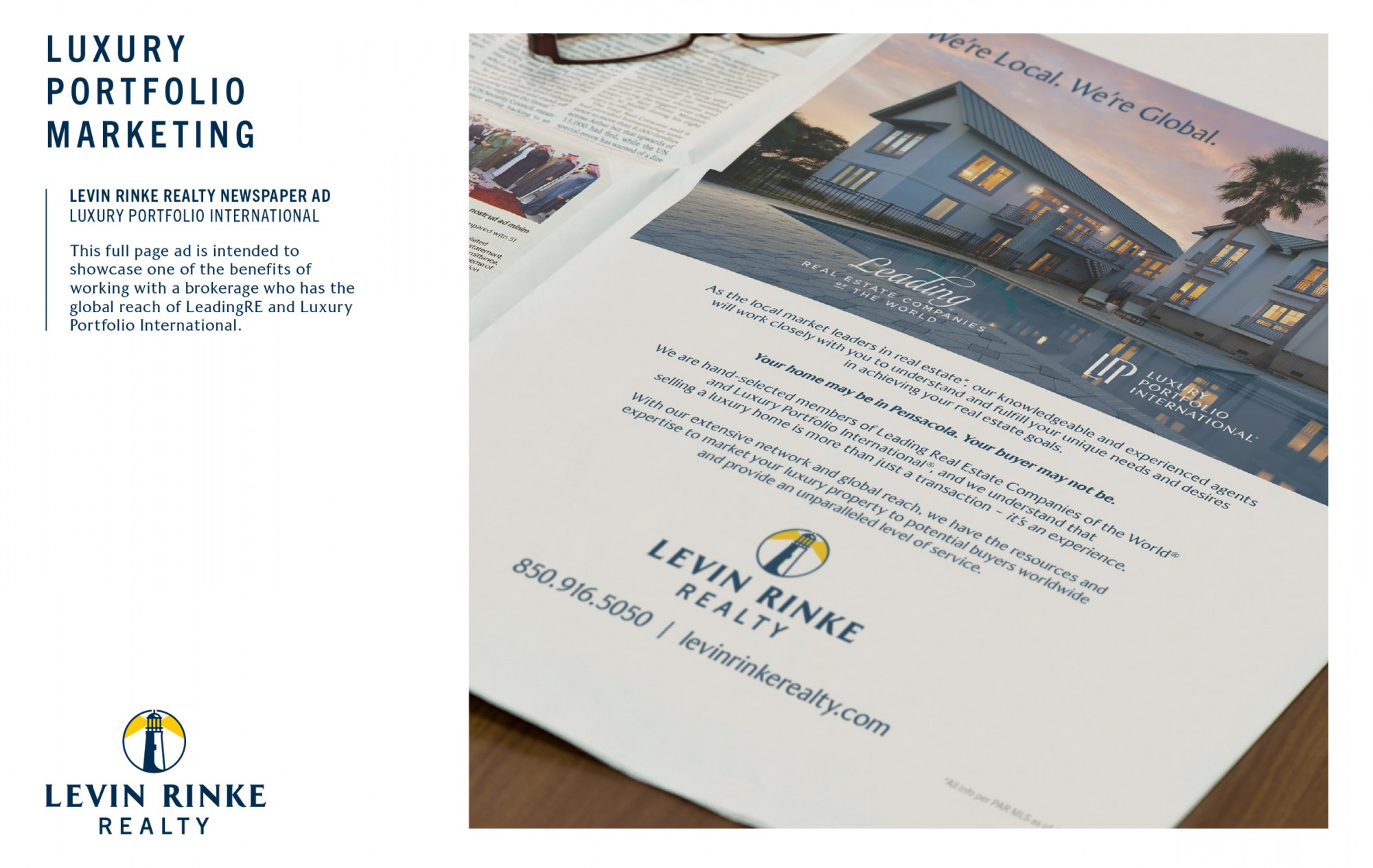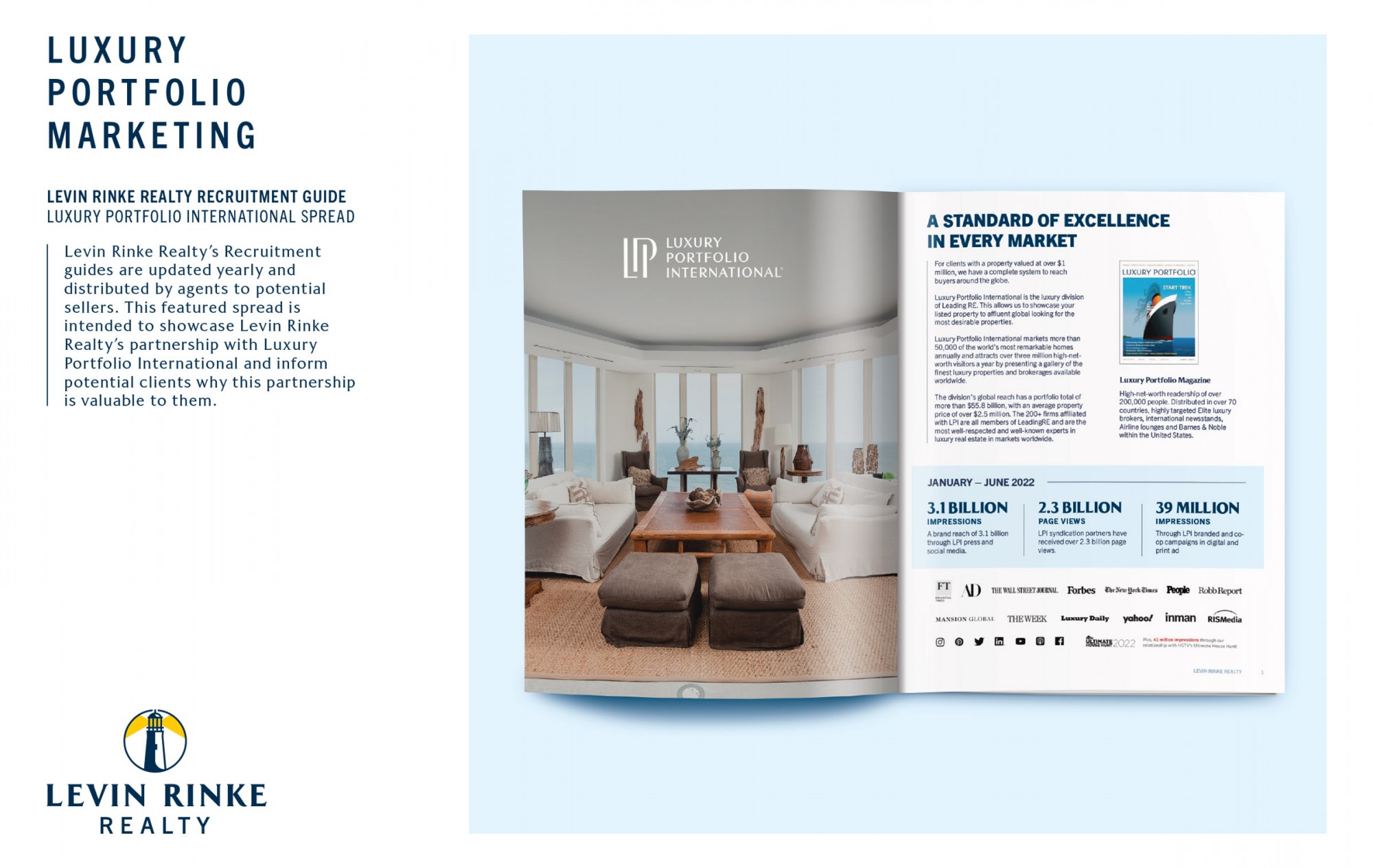 Levin Rinke Realty received the award for Luxury Portfolio Marketing, signifying excellence in luxury real estate marketing and exemplary incorporation of the Luxury Portfolio International® brand.
